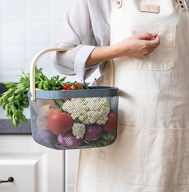 Portable fruit basket home light luxury kitchen vegetable drain basket snacks fruit storage basket shelf picnic basket