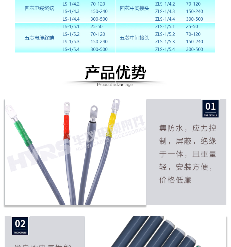 Huayi 1KV Low Pressure Cold Shrink Terminal Head Middle 23 23 45 Core LS-1 4 1 3 0 4 25-500m