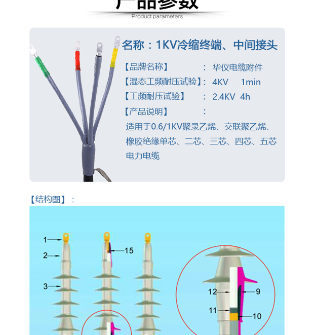 1KV three-core cold-shrink terminal 3 * 25-501KV three-core cold-shrink terminal 3 * 70-1201KV three-core cold-shrink terminal 3 * 150-2401KV three-core cold-shrink terminal