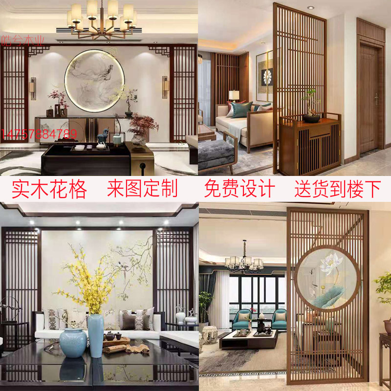 Solid wood flower lattice partition hollowed-out Chinese background wall imitation ancient door and window carved screen wood flower lattice Dongyang wood carving screen