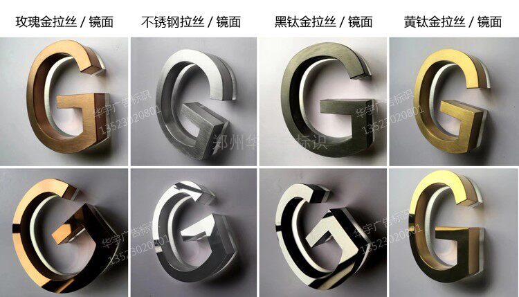 Stainless steel word brushed black titanium titanium alloy rose gold antique copper word door sign background wall crystal back light word
