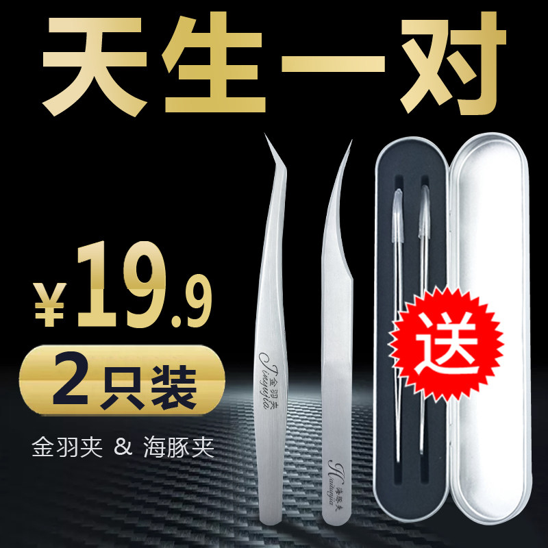 Eyelash grafting tool Flowering extended mouth Golden feather dolphin clip Planting eyelash artist students special tweezers pair
