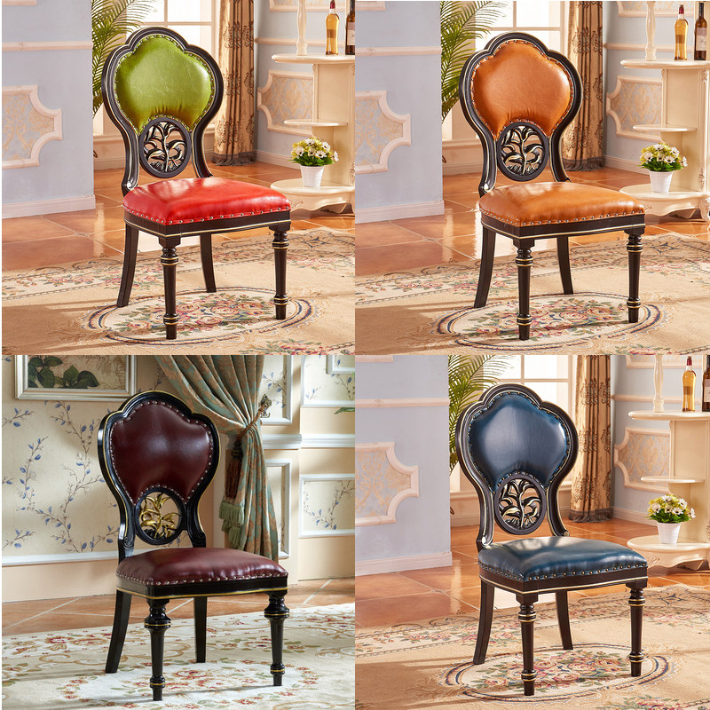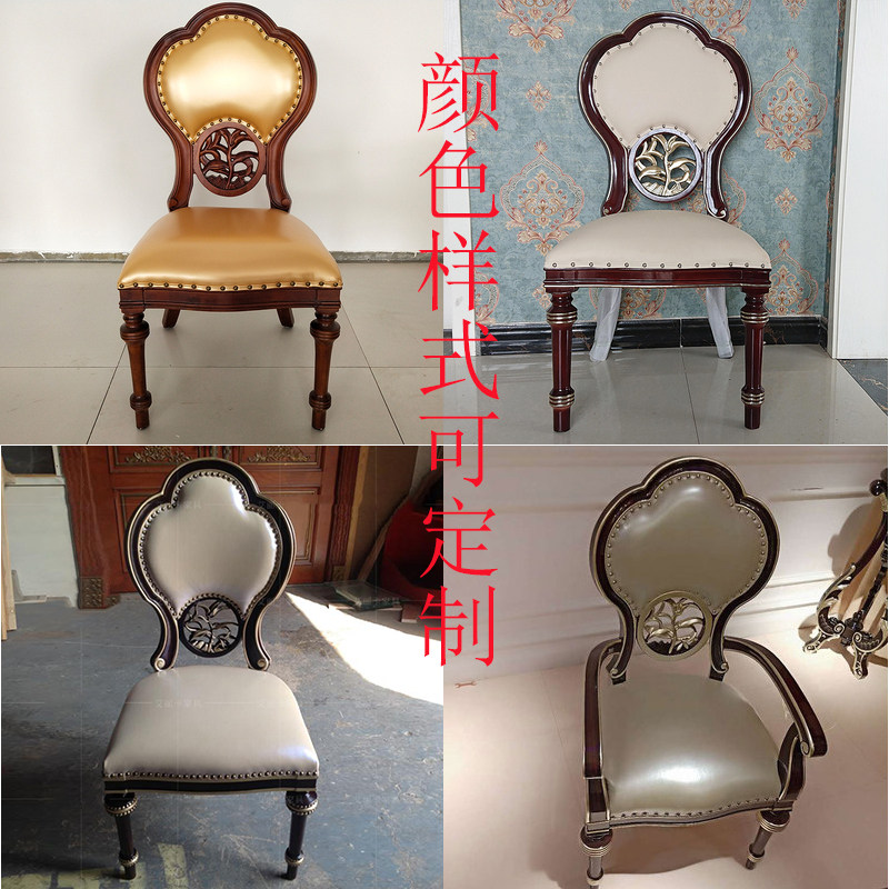 European-style solid wood carved soft-packed dining chair modern minimalist hotel manicure mahjong net red home American-style back chair
