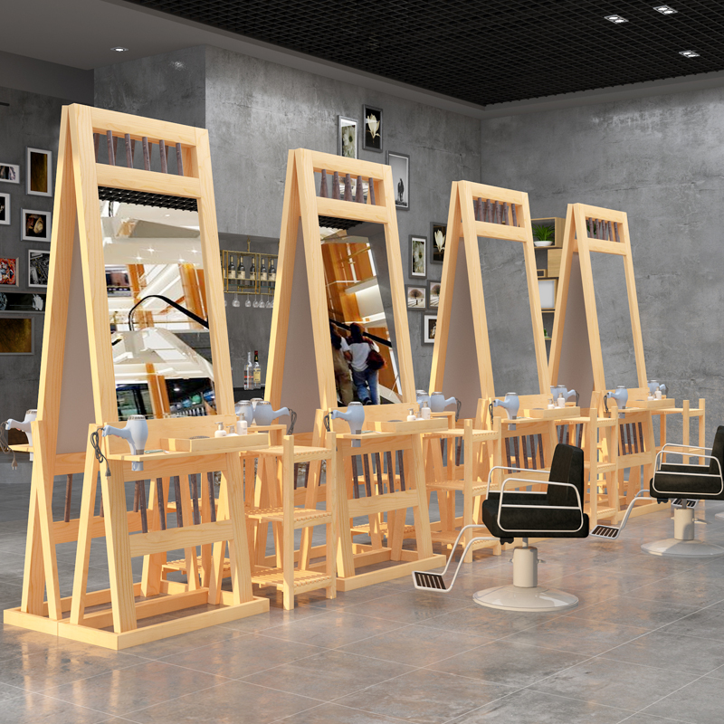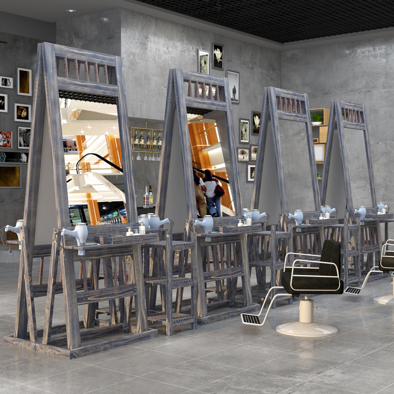 Hairdressing mirror floor-standing cabinet one-piece solid wood single-sided net red Li shop mirror table tide double-sided floor-standing mirror
