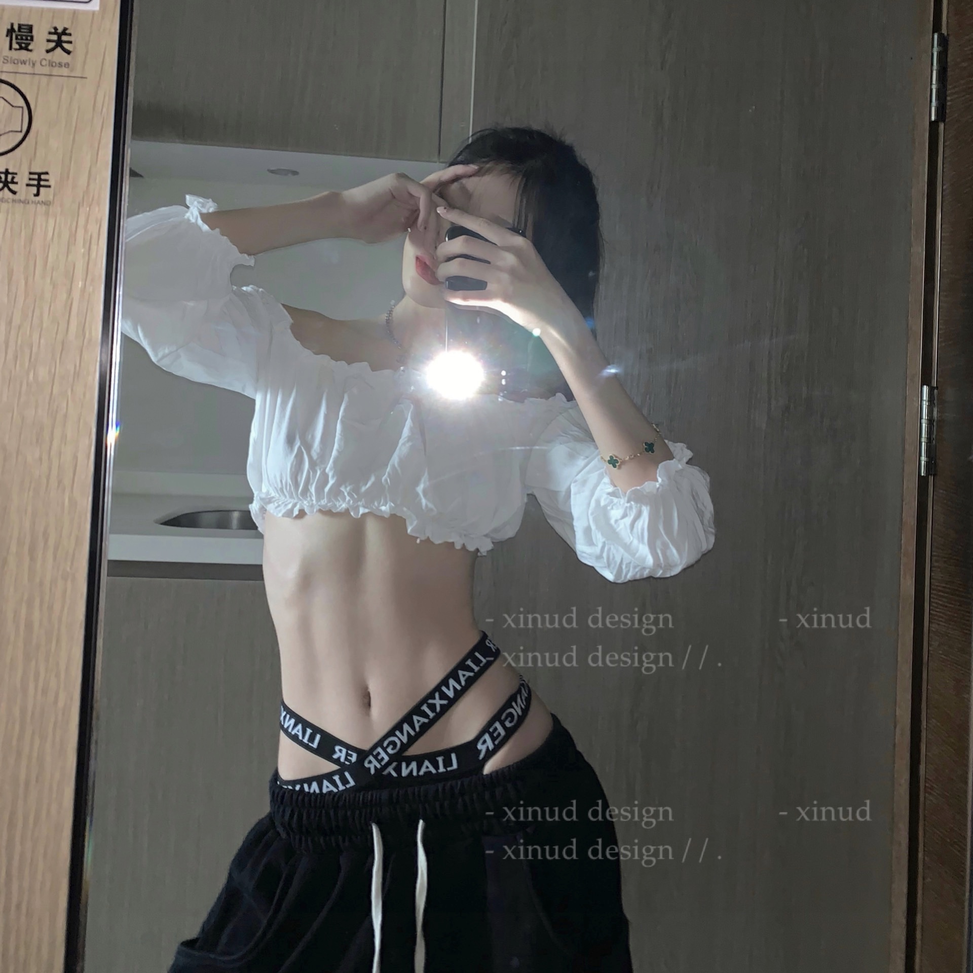 "LA" Sports Wind Sexy Strap Letters Cross Thin Ice Silk Triangle Pants Women Fitness Pants