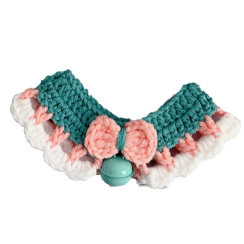 Pure Hand Knit Collision Color Cat Neckline Dogs Scarf neck Butterfly Knot Bell Pet Cute Collar original