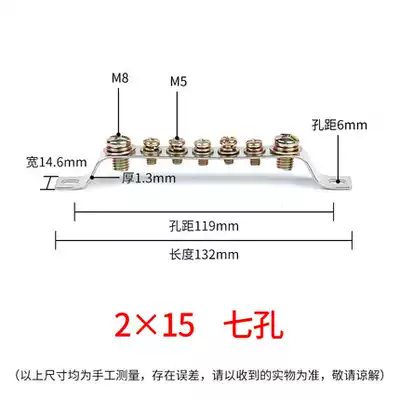 7-Hole Ground row 2 * 15mm ground Row terminal block computer room distribution box bus bar zero ground row grounding copper bar
