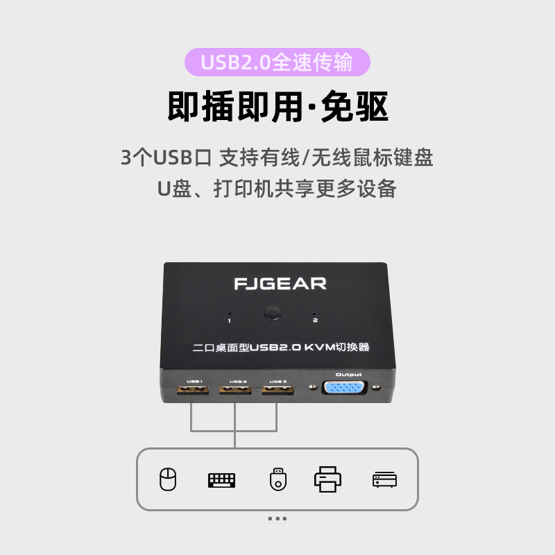 Fengjie Yingchuang KVM switch 2-port VGA two-in-one-out sharer Two computers share keyboard mouse sharer monitor HD switcher