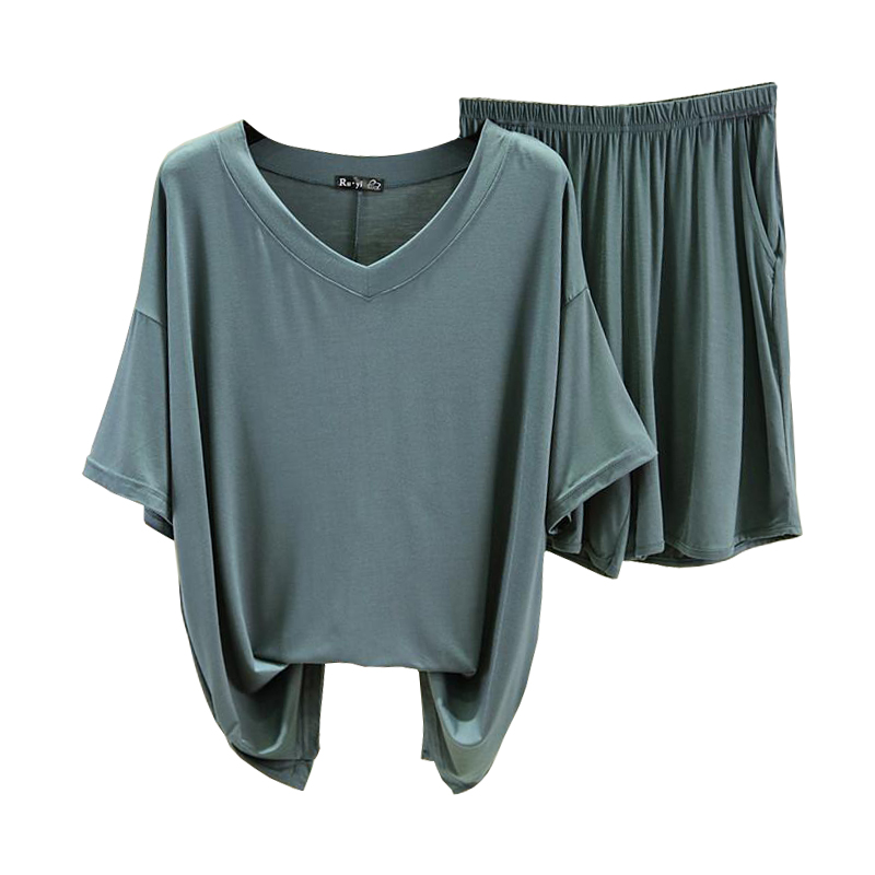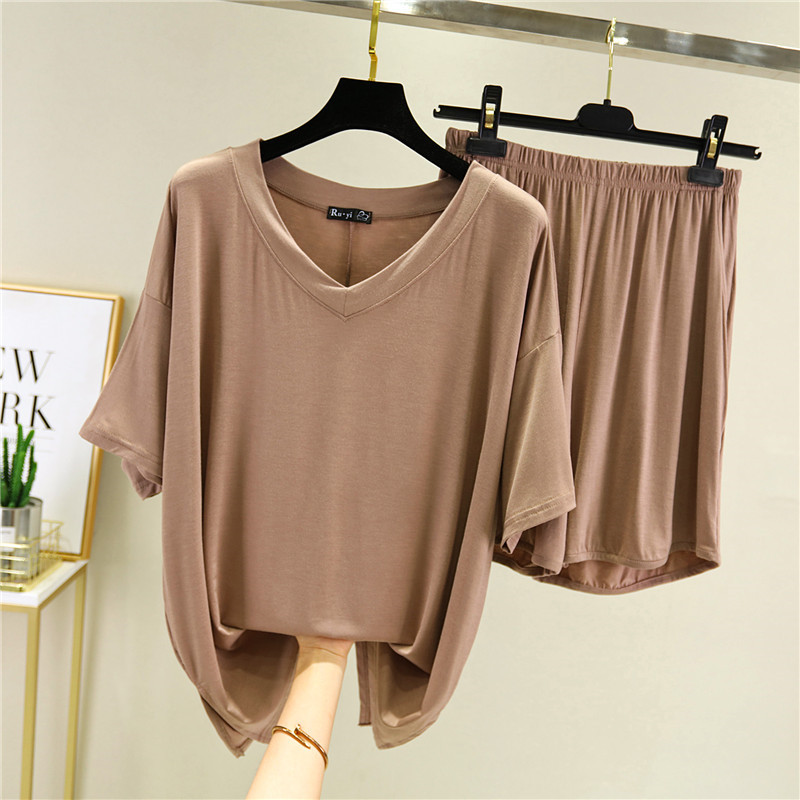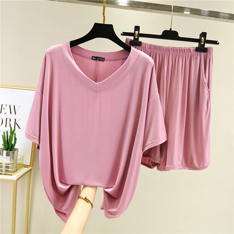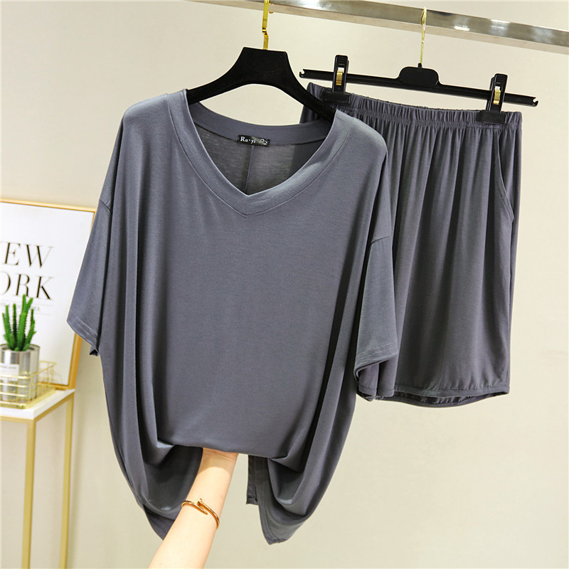 Summer home wear women's casual modal thin section short-sleeved mother two-piece set large size shorts loose set pajamas
