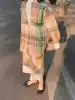 Tagi "Spring full grid shell powder Lake" Tencel Linen yarn-dyed micro-transparent overlay Gemini shirt set