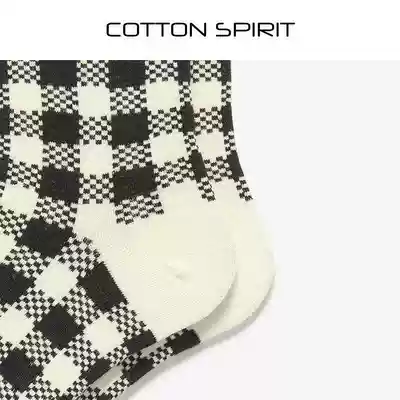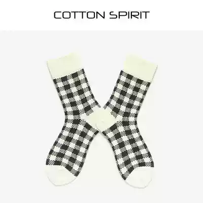 Cotton spirit black and white plaid socks Women's Mid-tube socks British retro academic style Joker sandals socks trend socks