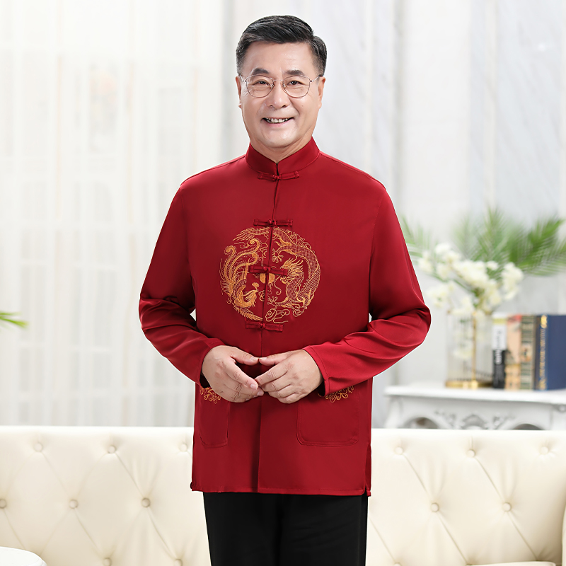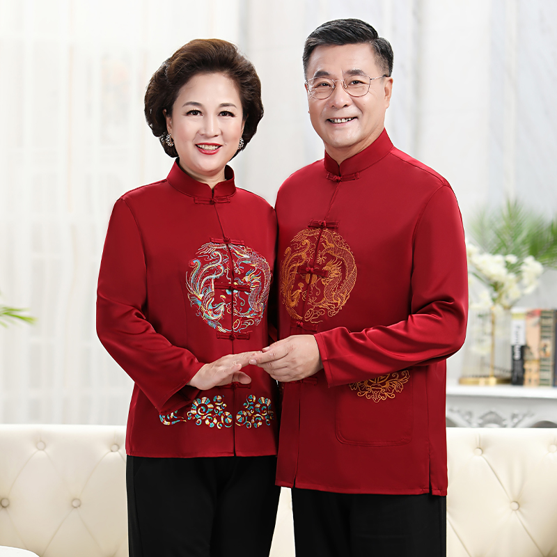 Women's Dragon and Phoenix wine red set men's Dragon and Phoenix Chengxiang wine red (single coat) Women's Blue Dragon and Phoenix Chengxiang (single coat) long sleeve women's wine red set of long sleeves men's Tibetan green jacket