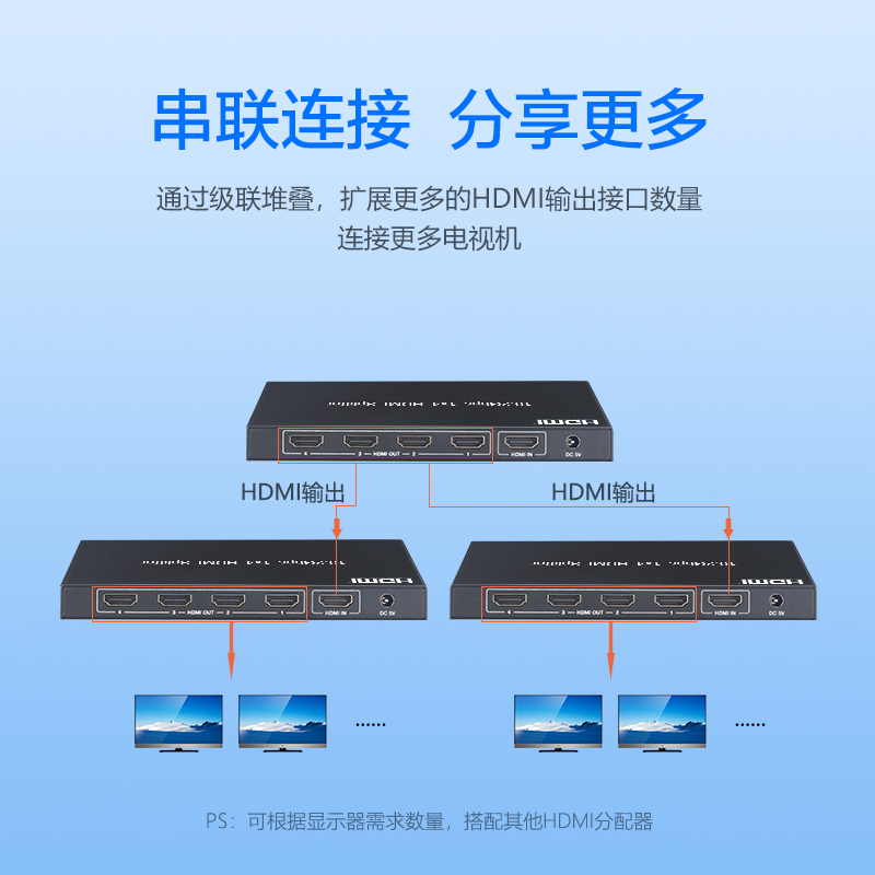 Aimai sees HDMI dispensers 1 in 4 out of high-definition 4K signal split screen in four out of computer line-of-wire monitoring for 1 minute 4