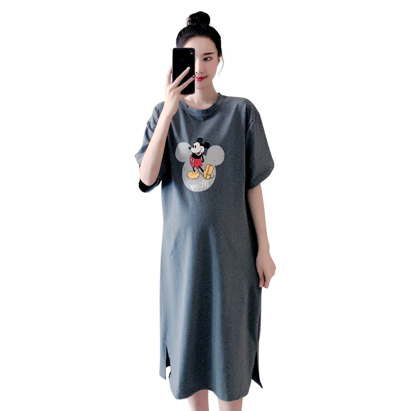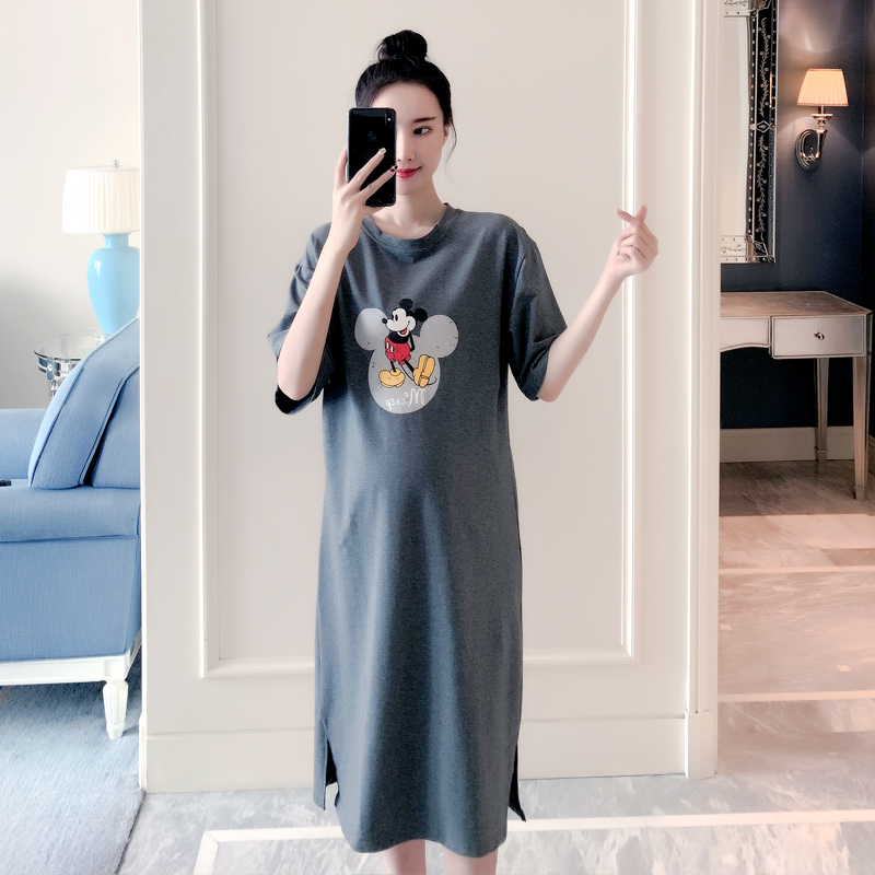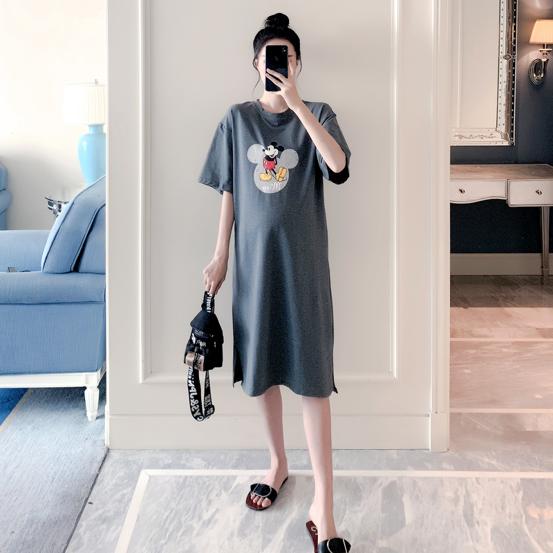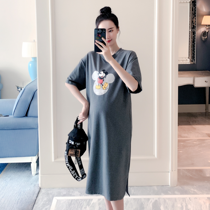 Pregnant women's summer clothes Large size pregnant women's T-shirt long dress tide 2021 summer fashion over the knee split loose pregnant women's dress