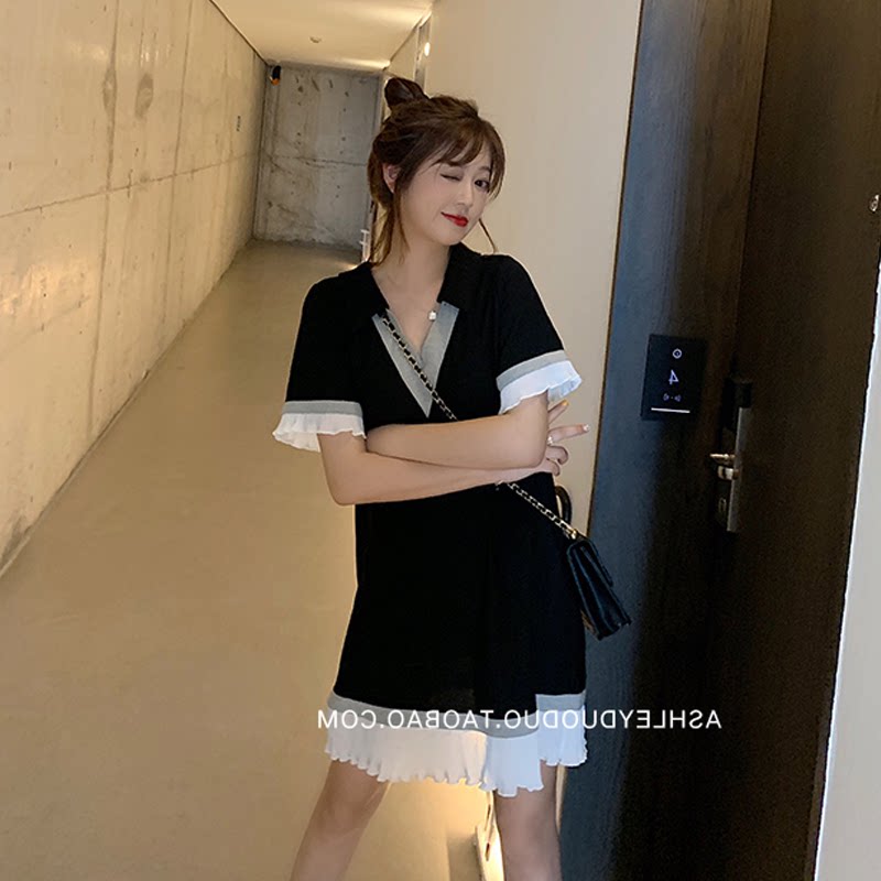 2021 summer dress new net red summer skirt age reduction Foreign style hot mom tide Korean version V-neck pregnant dress summer