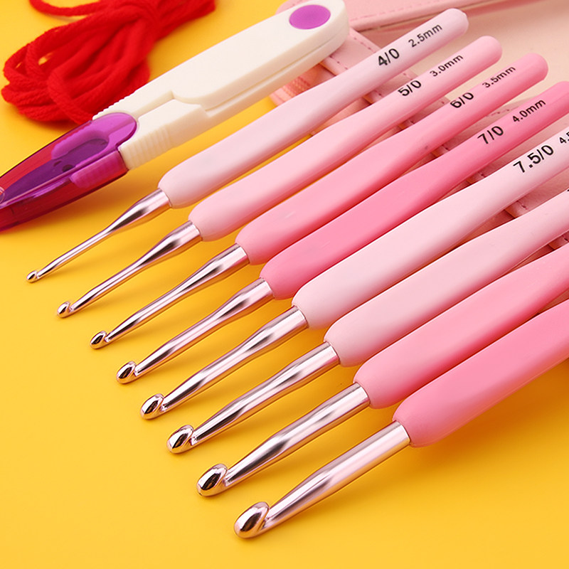 Bamboo hook 20 branches (Ticks Buttoned Sewing Needle) Coarse Hook Suit (With Packaging) Collection Plus Purchase Gift Rainbow Crochet Oxidized Color Aluminum Color Hook Needle Plastic Imitation Porcelain Rose Red Crochet Plastic