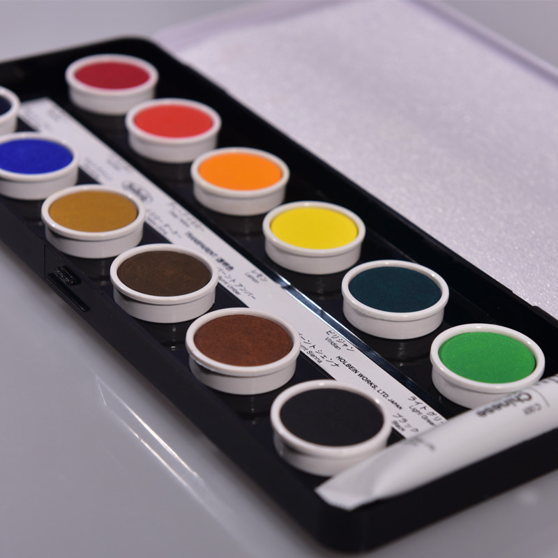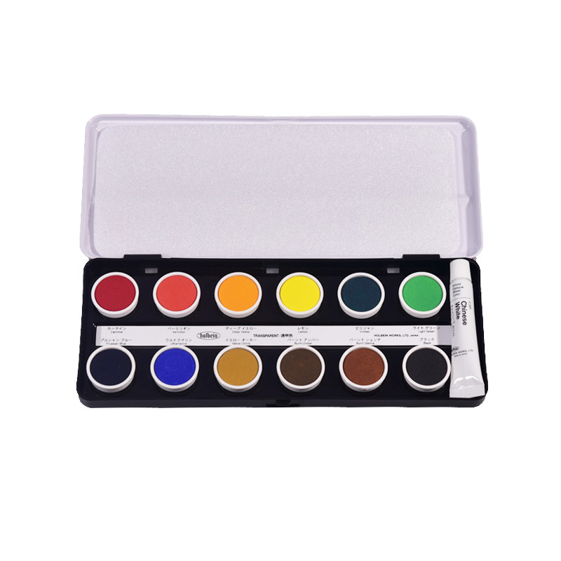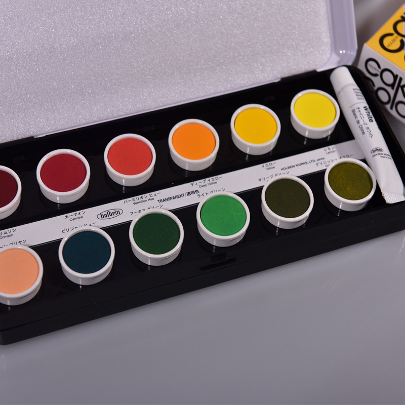 Hohlbein net red disc red box opaque cake water color 12 24 color solid watercolor paint