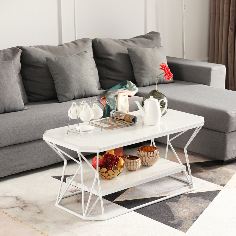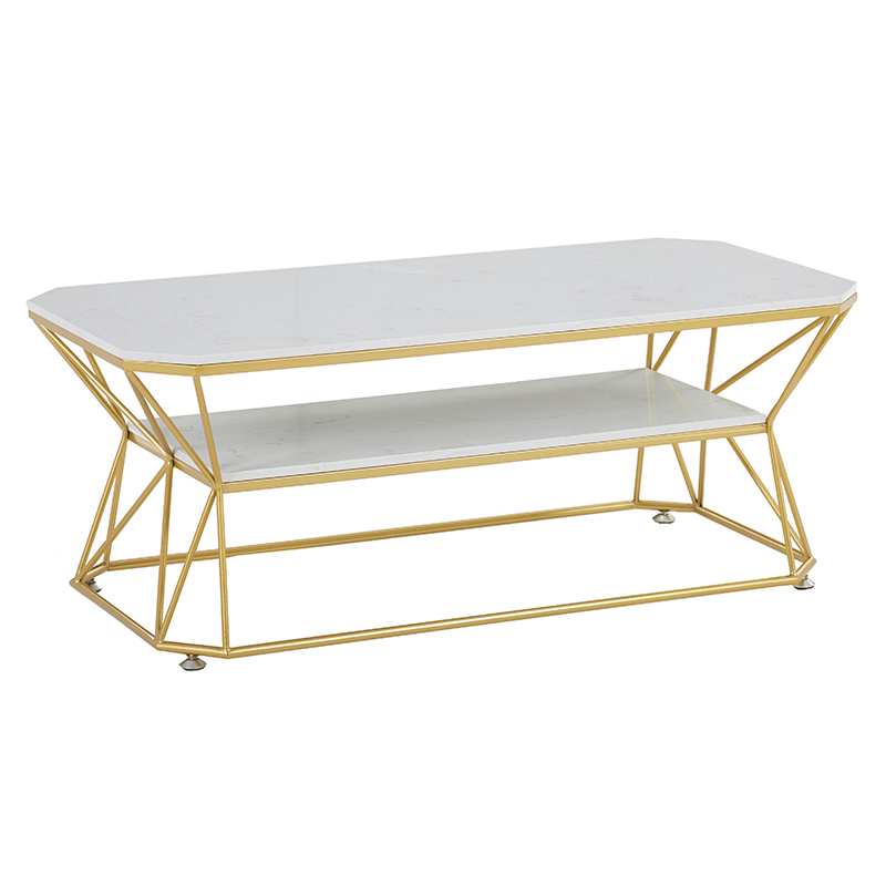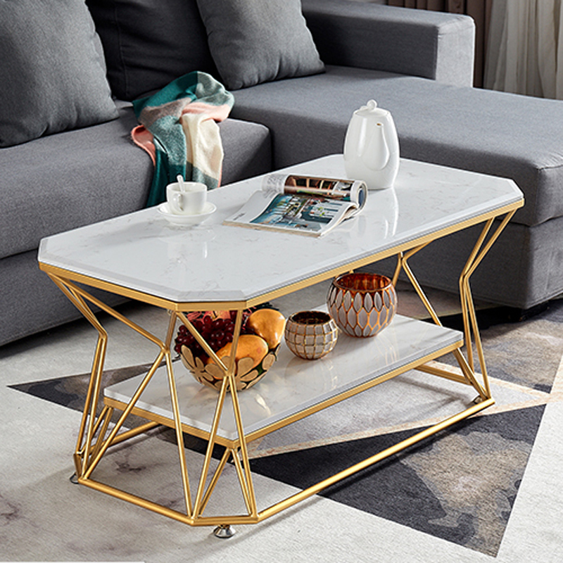 Nordic golden coffee table light luxury living room single-layer double-layer home marble storage multi-functional modern minimalist coffee table