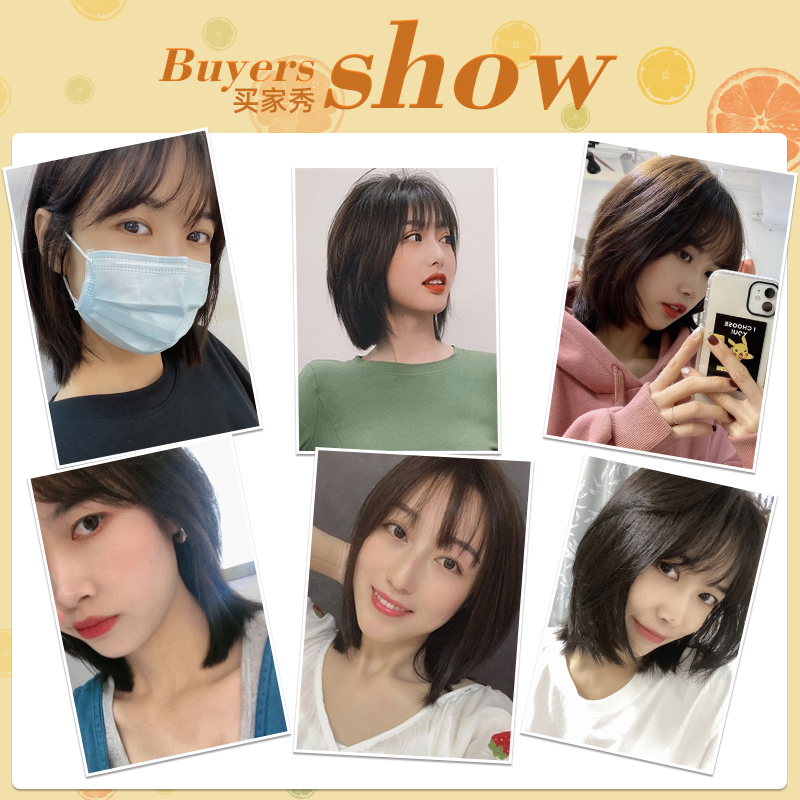 Wig woman short hair long haired full head cover full-real natural mesh red and cut short hair wig sets female live-action hair