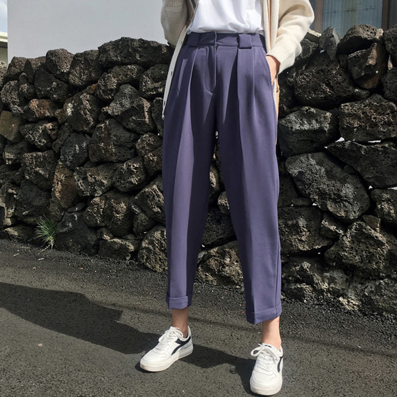 Large size women's high waist lob pants straight pants women's fat mm autumn loose pipe pants thin wide legs suit pants