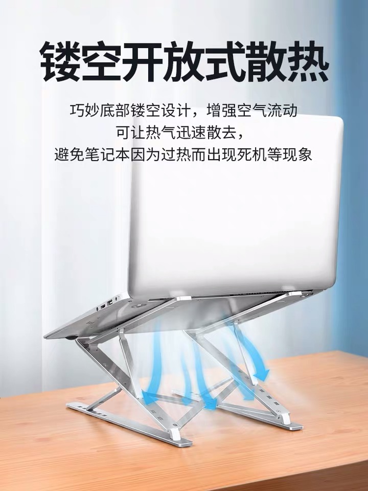 Notebook computer aluminum alloy bracket hollowed-out silicone gel portable folding double layer containing adjustable lift