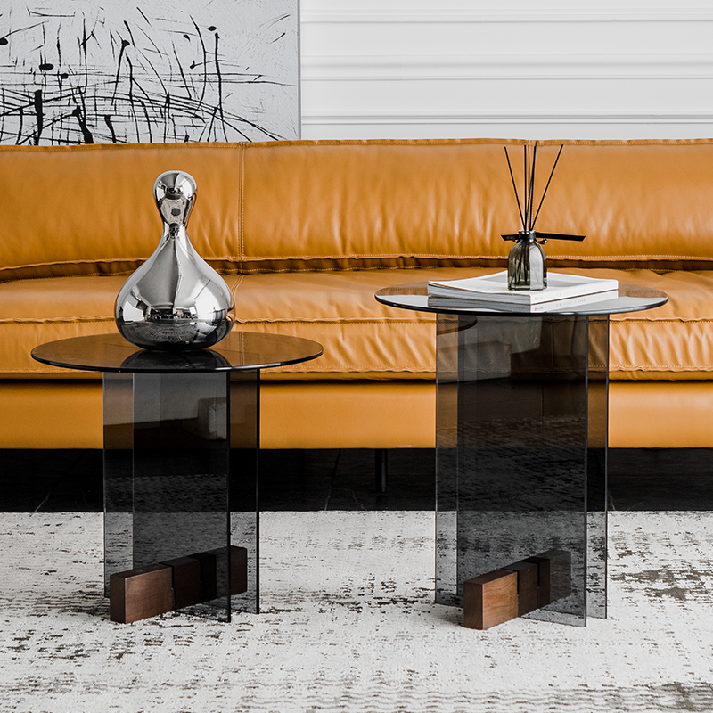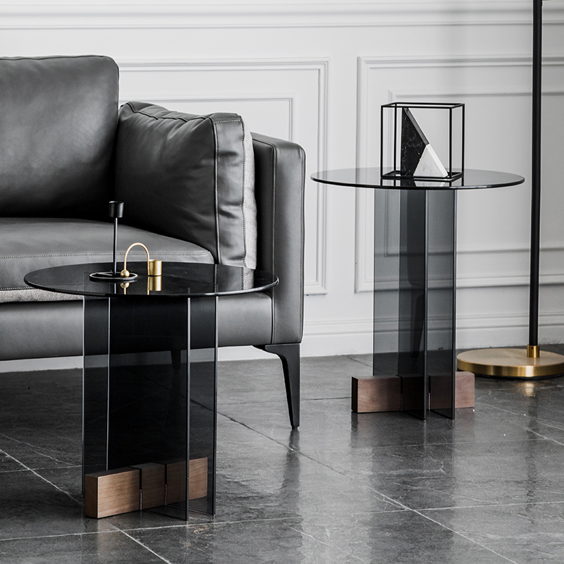 Nordic glass tea table small family type light extravagant modern round sofa edge a few living room Home Mini transparent small round table