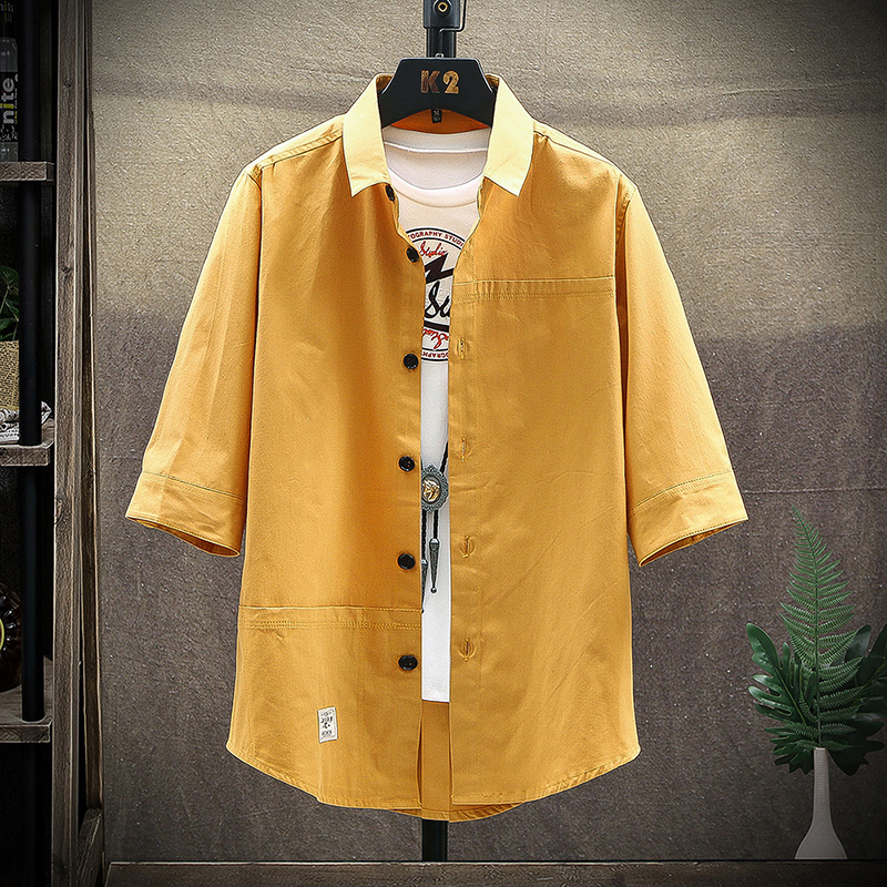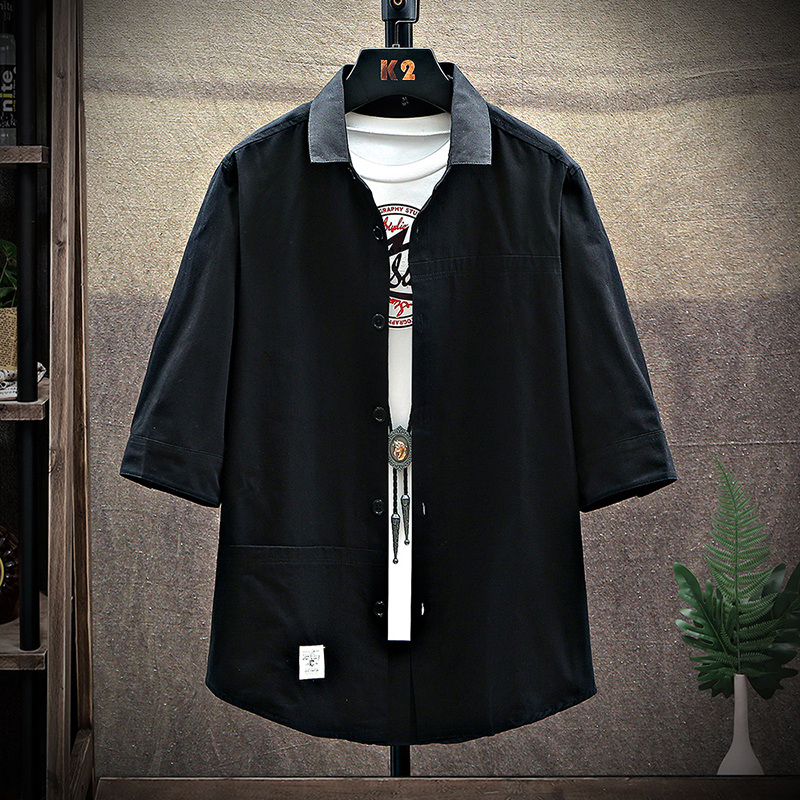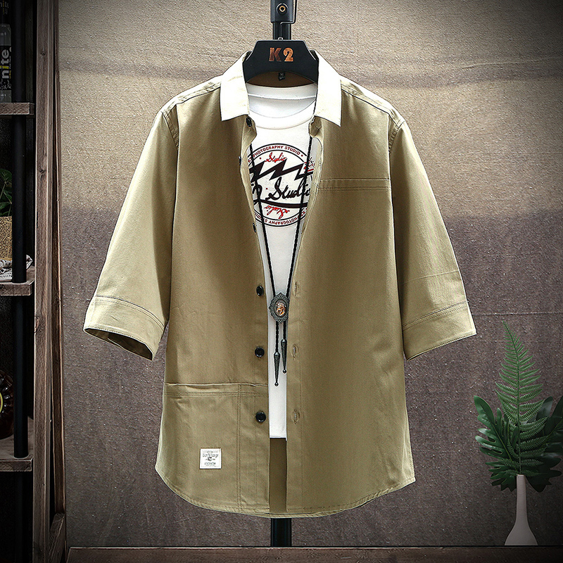Tooling shirt men's long-sleeved shirt handsome spring and summer short-sleeved Korean style trendy loose casual jacket