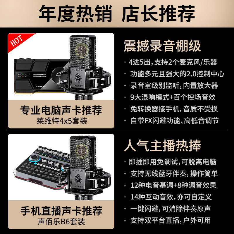 Levitt 440 microphone live broadcast equipment full set Senran Aiken M8 sound card singing mobile phone dedicated 540 microphone national k singing bar anchor with recording equipment computer desktop condenser microphone