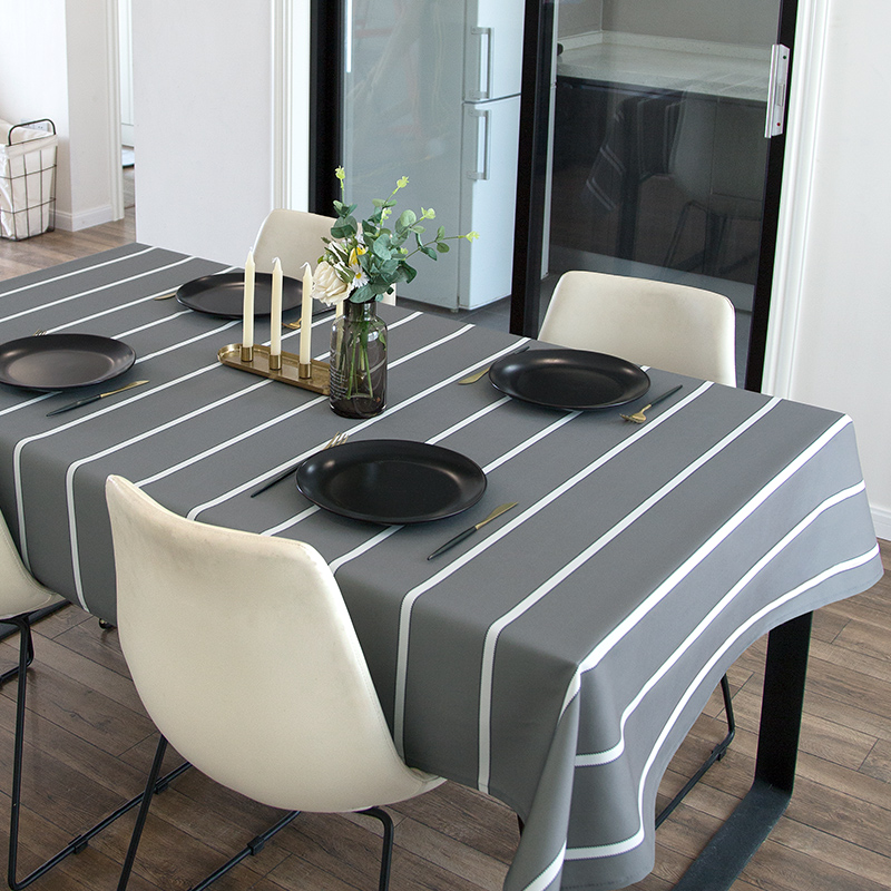 Modern minimalist cotton hemp home waterproof and burn-free table cloth art grey striped rectangular table cloth tea table cloth