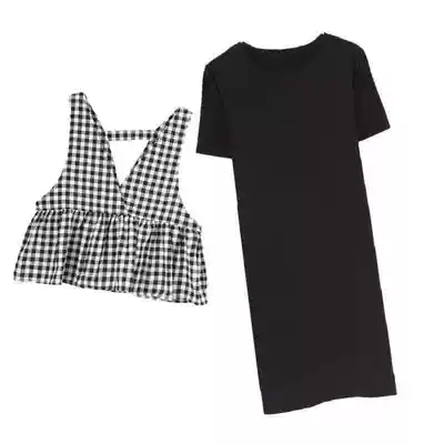 Pregnant women's summer clothes set fashion summer tide hot mom plaid vest long version of dress Net red summer two-piece set