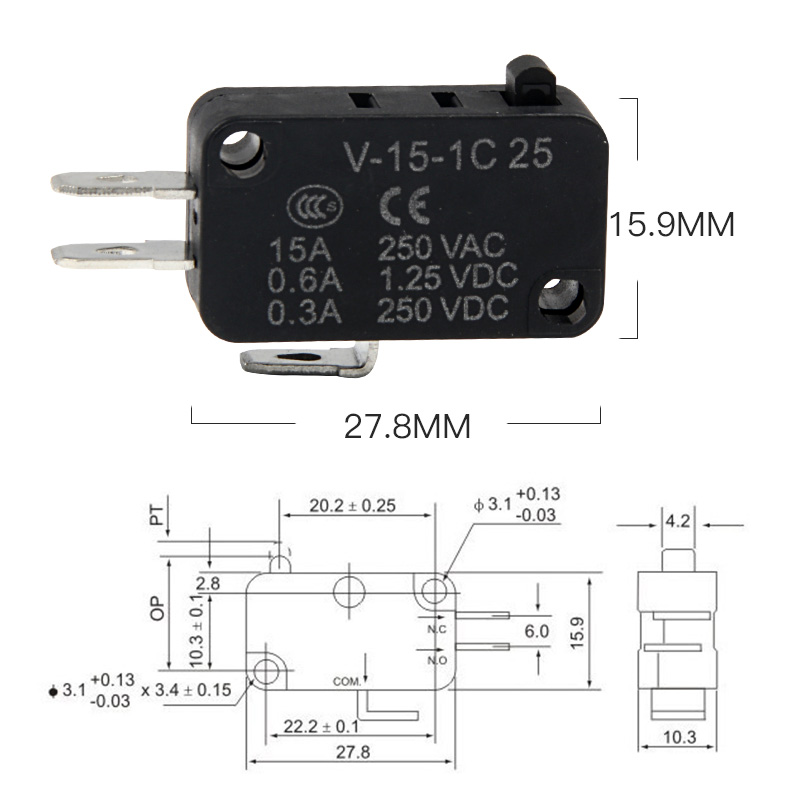 Small travel limit micro switch V-15 V-152 V-153 V-155 V-156-1C25 silver contacts