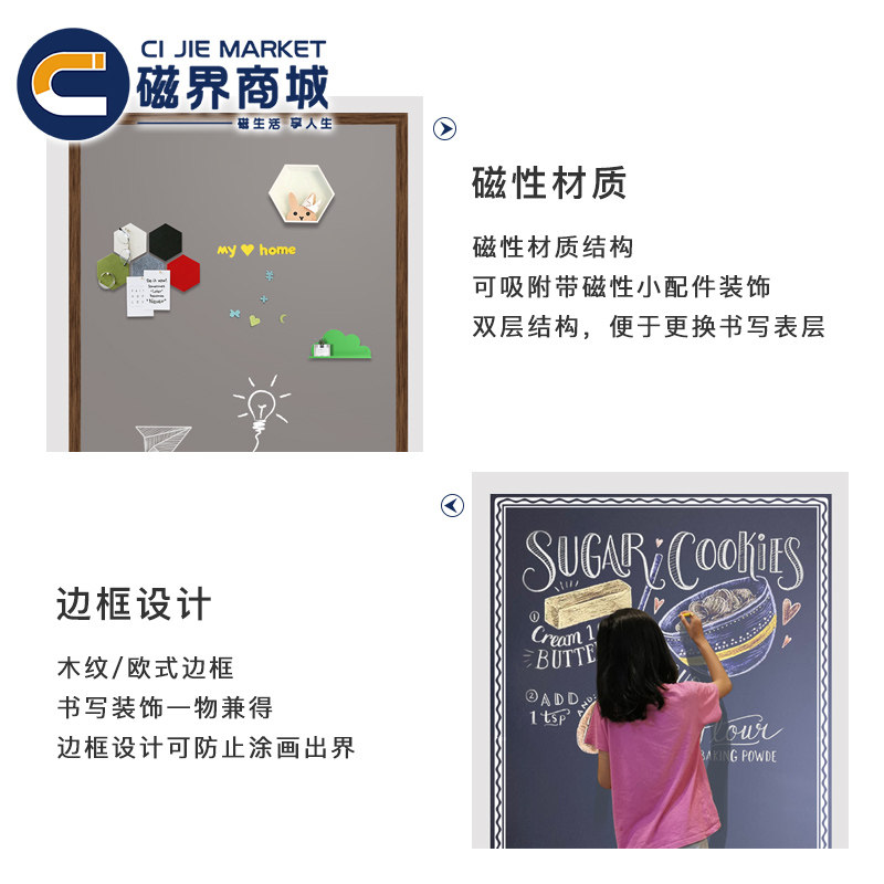Magnetic world mall blackboard wall stickers magnetic blackboard home magnetic small blackboard stickers children's decorative printing wood grain border