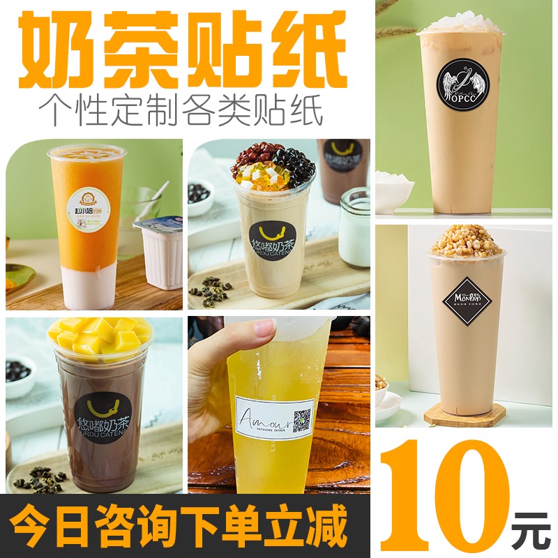 Transparent waterproof self-adhesive Thai milk tea cup logo sticker custom sealing sticker two-dimensional code label sticker production fruit flower shop delivery advertising trademark certificate printing printing non-stick customization