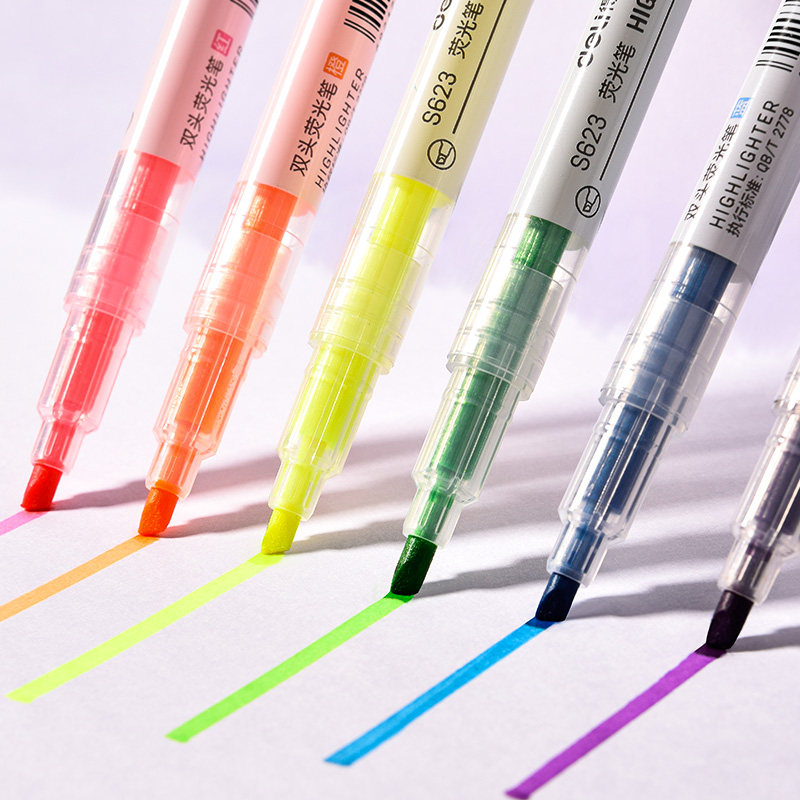 Able S623 small double head fluorescent pen student Colour Focus Mark Pen Child Graffiti Painting 6 Color Optional