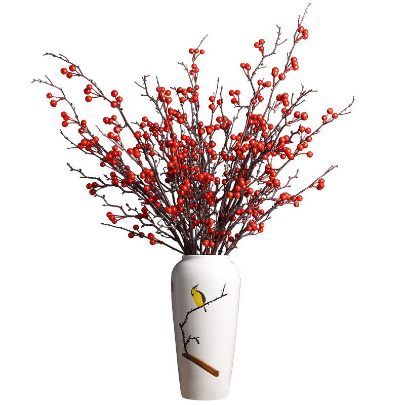 North American Winter Green Emulation Flowers Red Hair Treasure Fruits Lucky Fruits Chinese Living Room Pendulum for Spring Festival Decorative Flowers for Spring Festival-Taobao