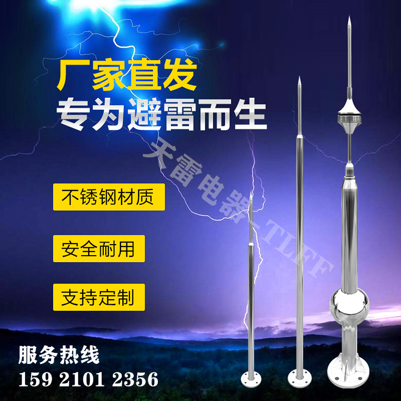 With Ball Custom Lightning Rod Stainless Steel Needle Home Industrial Stainless Steel Anti-Thunder Outdoor Roof Building Lightning Protection Pin