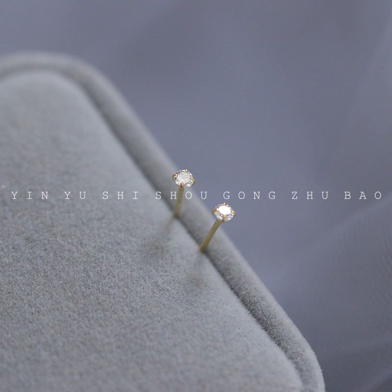Super flash ear bone nail 925 sterling silver plated 14k gold simple 2 5mm very small four-claw mini diamond ear hole ear needle
