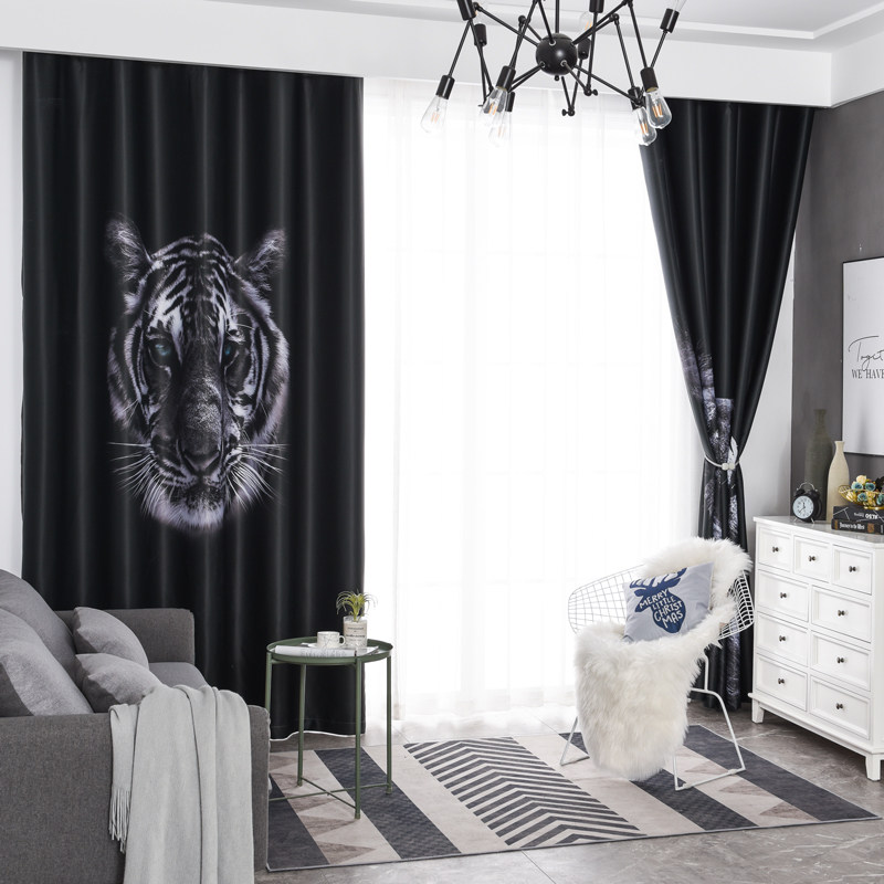 Custom floor window thickening thick tiger head black and white industrial window bedroom full shade cloth hole hook seamless curtain