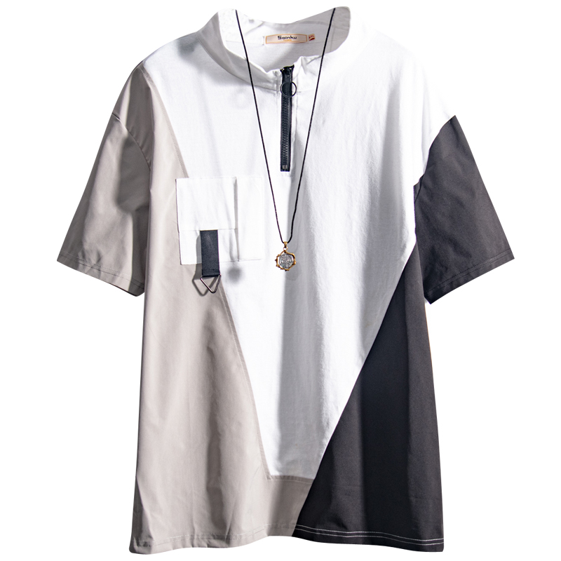 White Sugar Rose 2022 Harbor Craze Collared Short Sleeve T-Shirt Male Summer Pure Cotton Upright Collar Blouse Handsome Fashion Ins