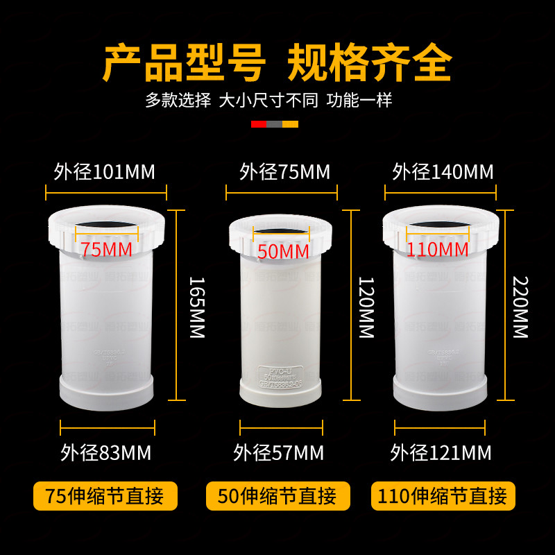 PVC extended telescopic section 50 75 110 160 sewer pipe telescopic section drainage accessories water pipe joint live joint