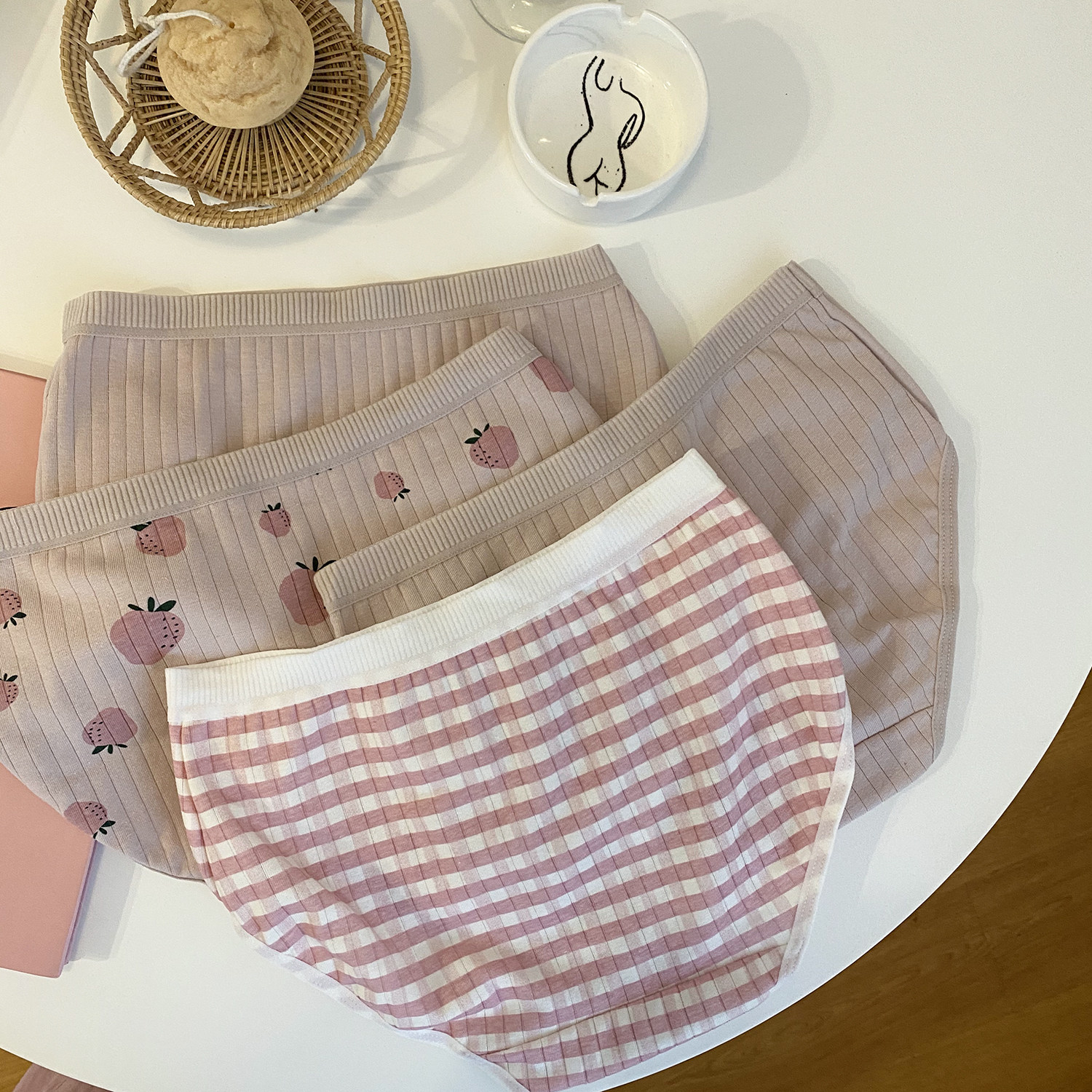 Xin Gang Bang Bra4 briefs Japanese girl heart cute strawberry stripe print pure cotton student panties for women