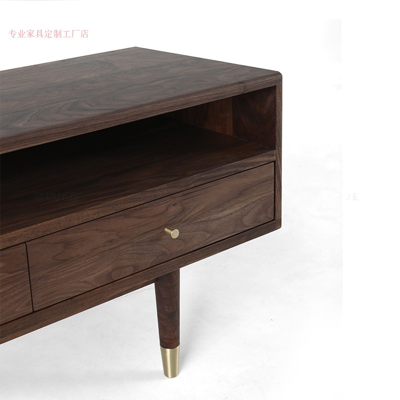 Black walnut solid wood log furniture audio-visual cabinet Nordic TV cabinet model room villa furniture can be customized