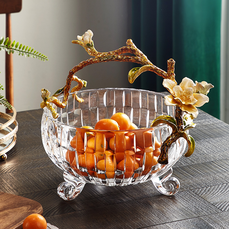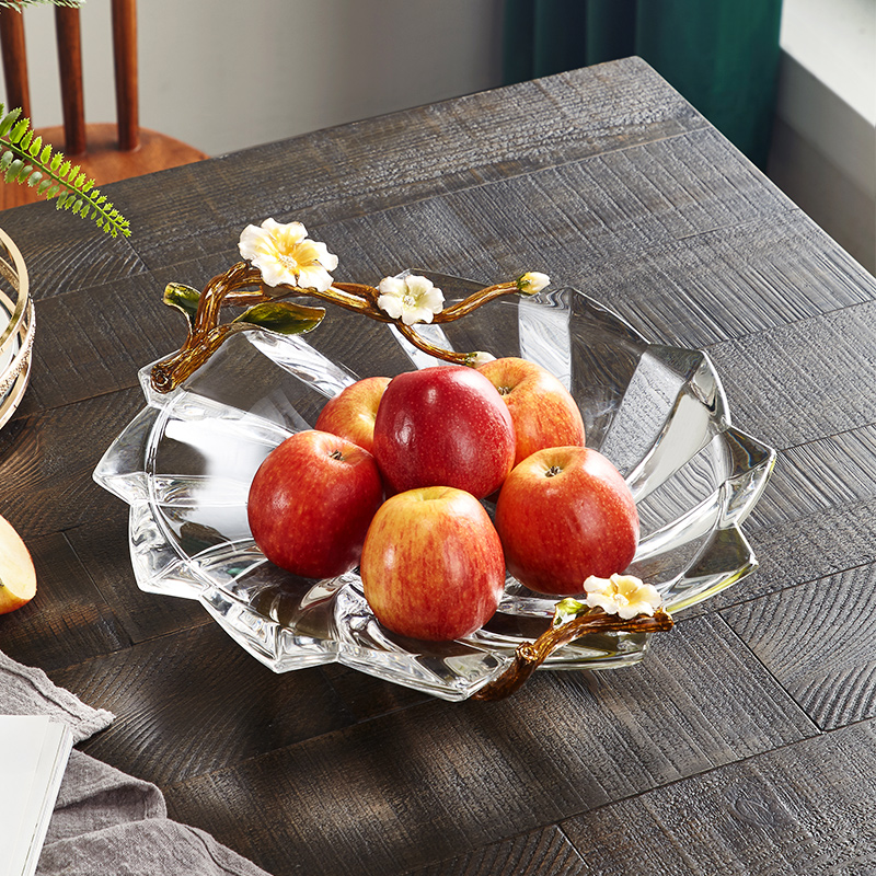 Light luxury crystal glass fruit plate living room desktop enamel color fruit plate decoration European-style dining room decoration creative decoration