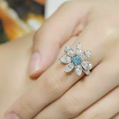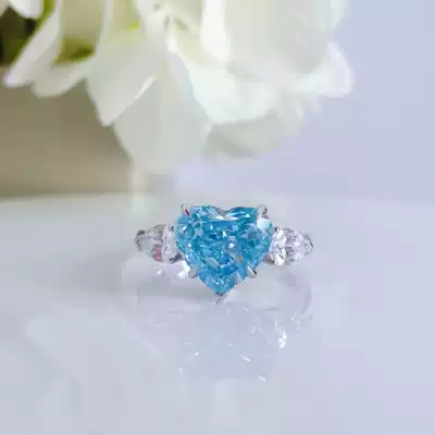 Four chroma artificial blue diamond ring 18K gold simulation Color Diamond Yellow Diamond green diamond pink diamond pink diamond pendant jewelry customization