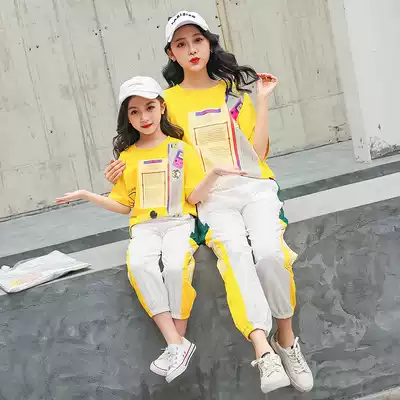 2021 New Net red parent-child clothing summer women's summer mother and child short sleeve sports foreign school set Leisure