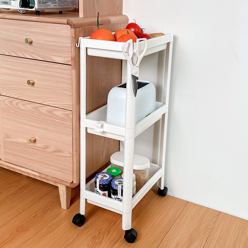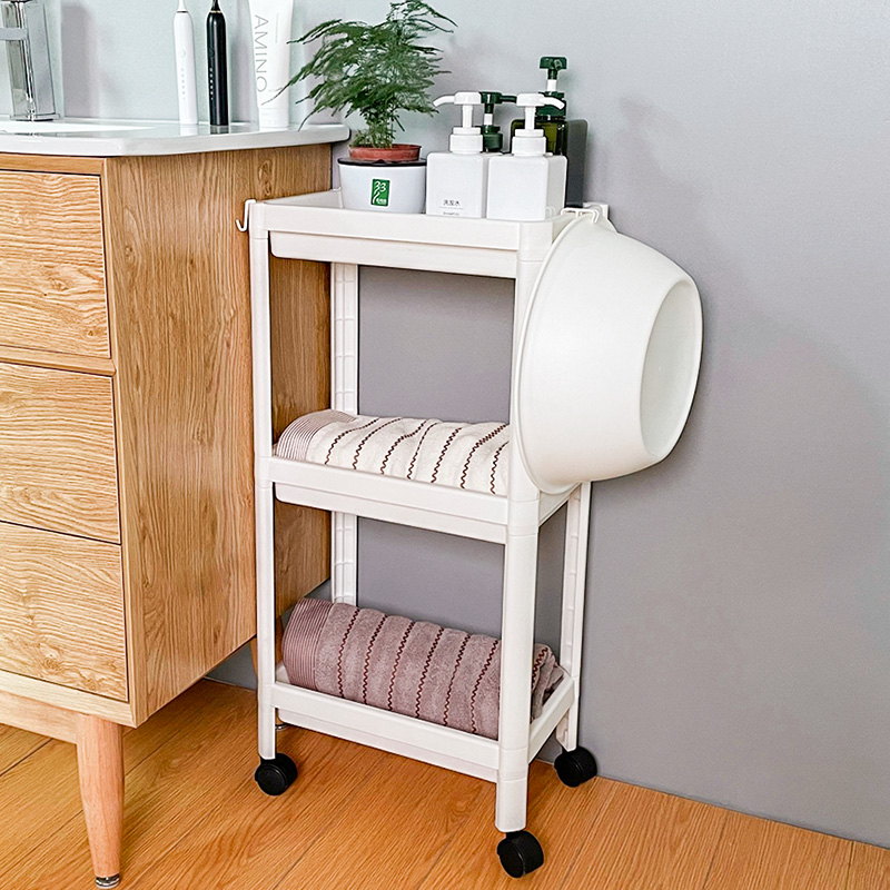 Plastic removable shelf Floor-to-ceiling multi-layer living room kitchen cart with rollers Powder room Bathroom storage layer shelf