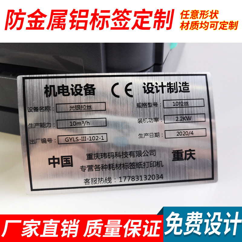 Nameplate adhesive sticker label Imitation Metal Light Silver Wire Drawing Matt Silver Pet Distribution Box Signage Color Printing Customize