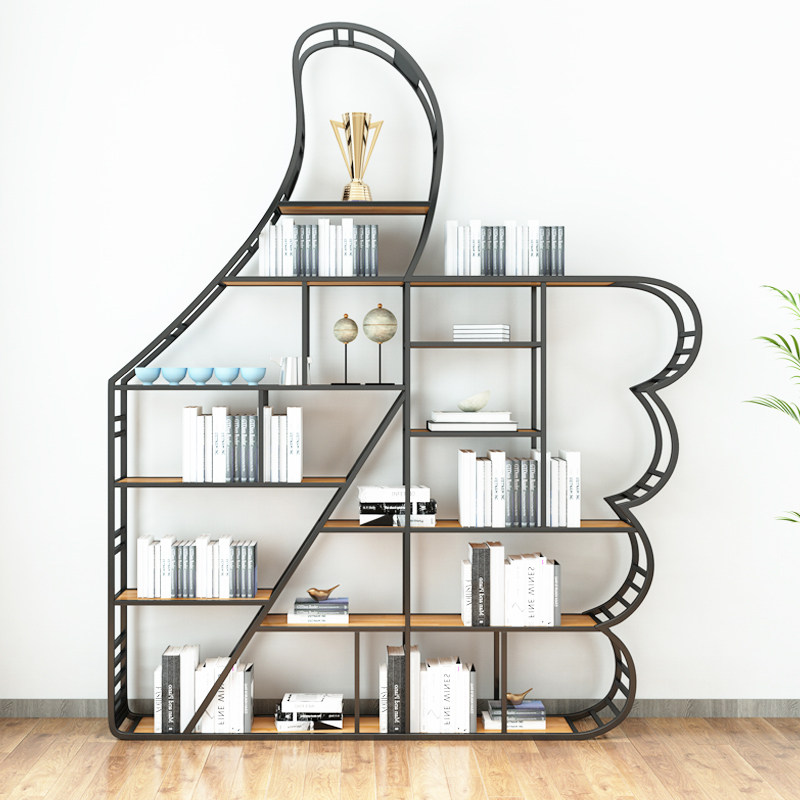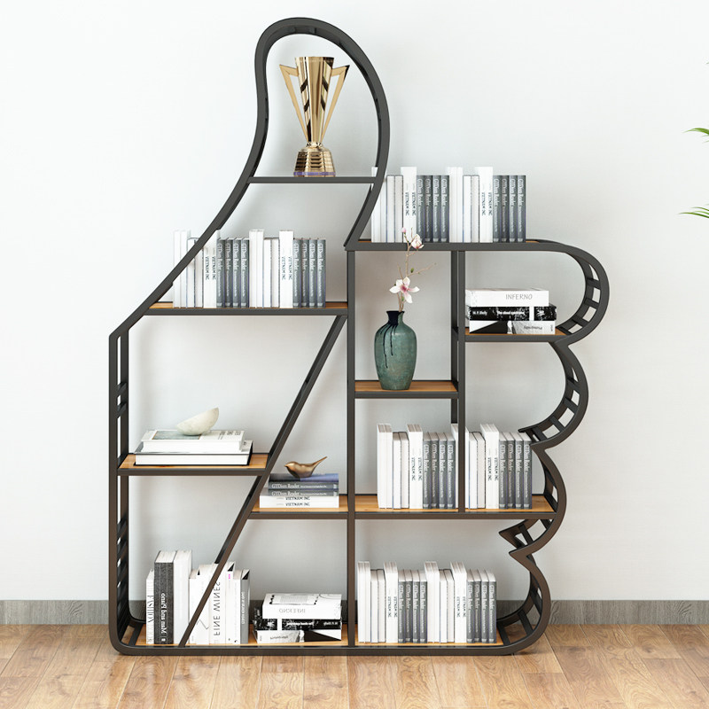 Wrought iron solid wood bookshelf shelf simple study creative art landing children's Nordic bookcase office