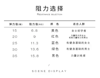 Yellow 15 LB Red 20 LB Blue 25 LB Green 30 LB Black 35 LB Blue Pull Band 20 LB