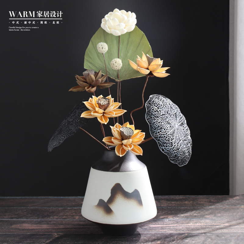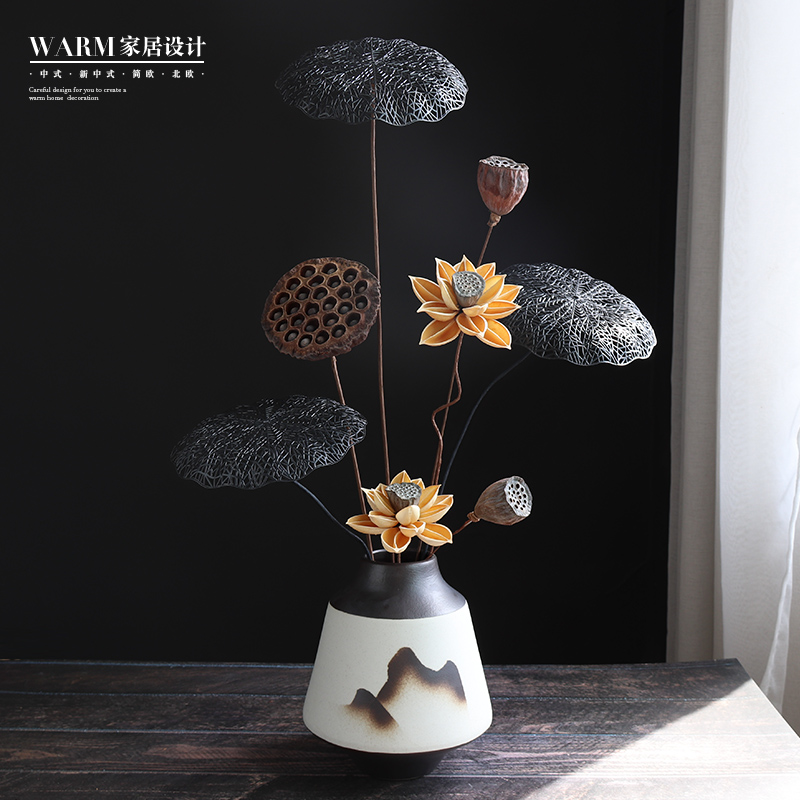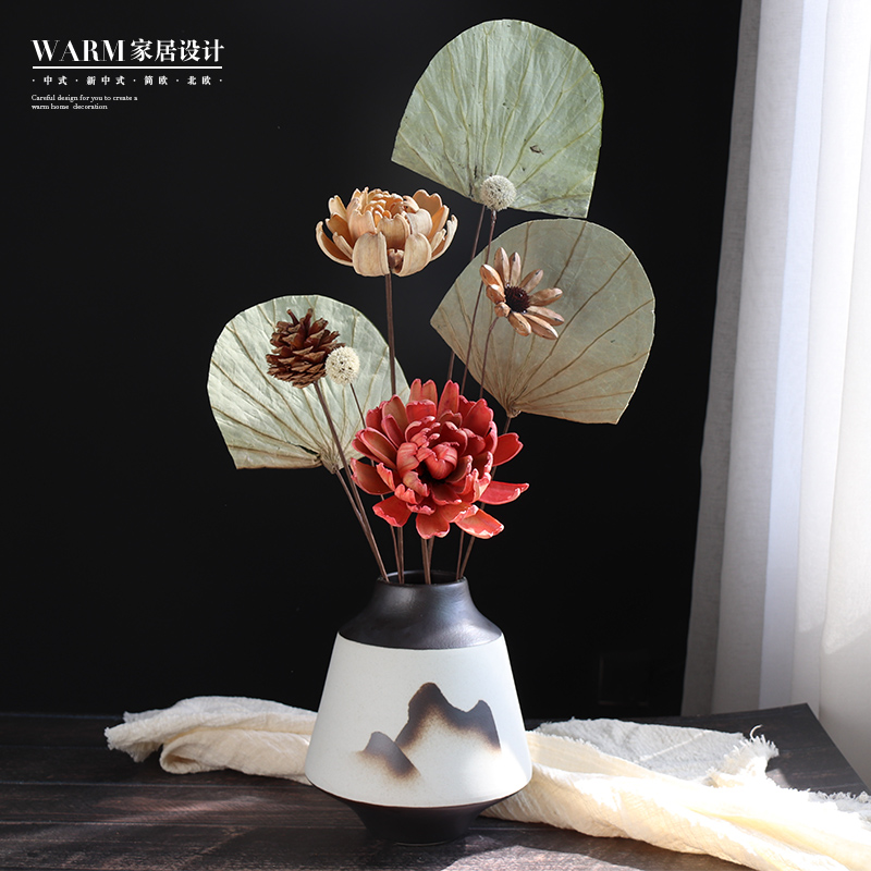 New Chinese dried flower bouquet decoration decoration Living room decoration Home vase flower arrangement Dining table entrance Zen lotus flower